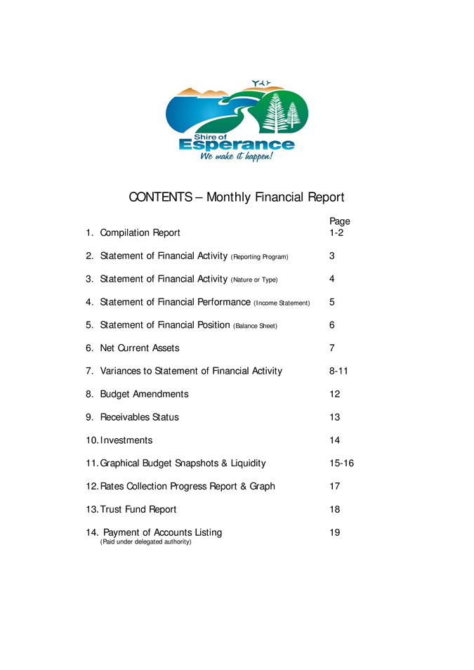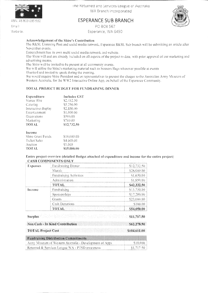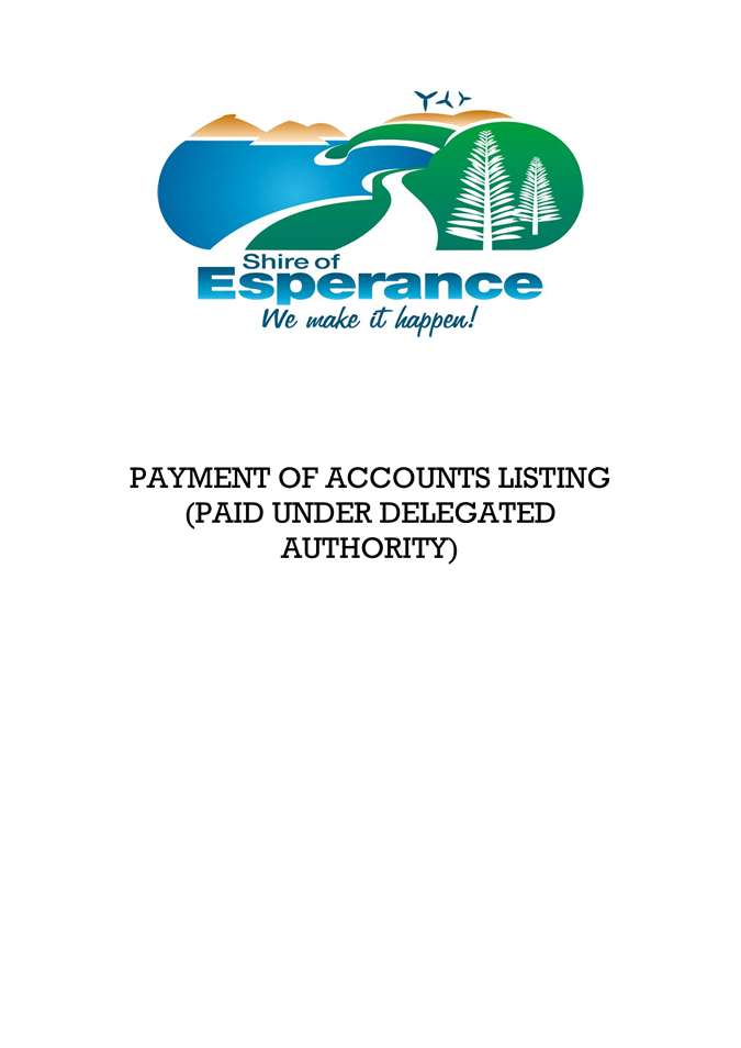 No responsibility whatsoever is implied or accepted by the Shire of Esperance for any act, omission or statement or intimation occurring during Council or Committee meetings. The Shire of Esperance disclaims any liability for any loss whatsoever and howsoever caused arising out of reliance by any person or legal entity on any such act, omission or statement or intimation occurring during Council or Committee meetings. Any person or legal entity who acts or fails to act in reliance upon any statement, act or omission made in a Council or Committee meeting does so at that person’s or legal entity’s own risk.