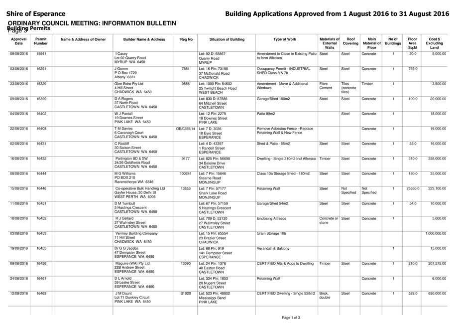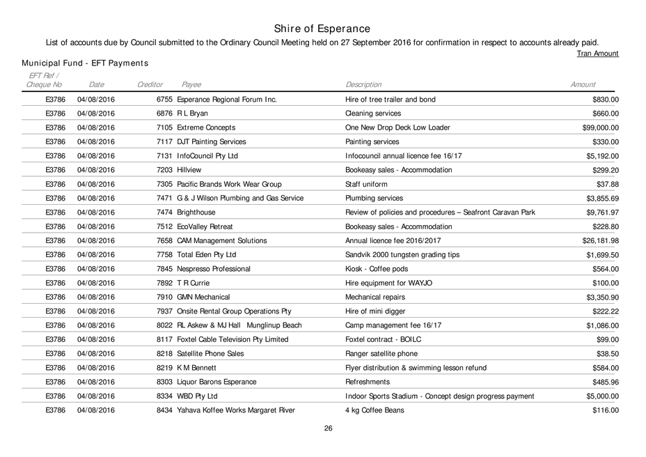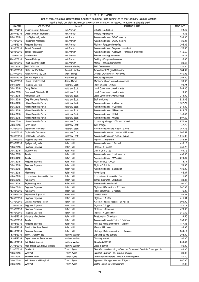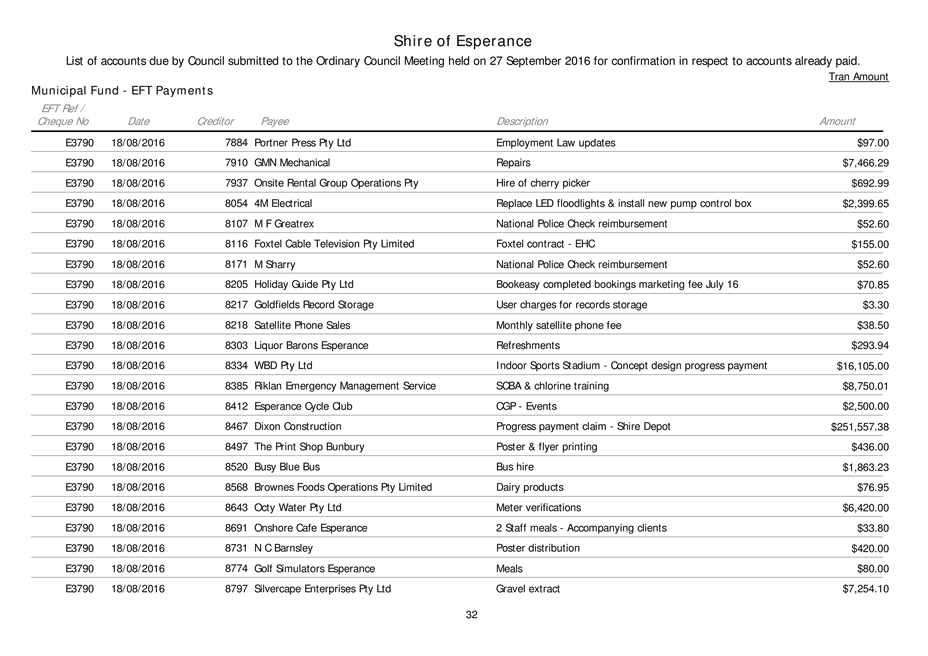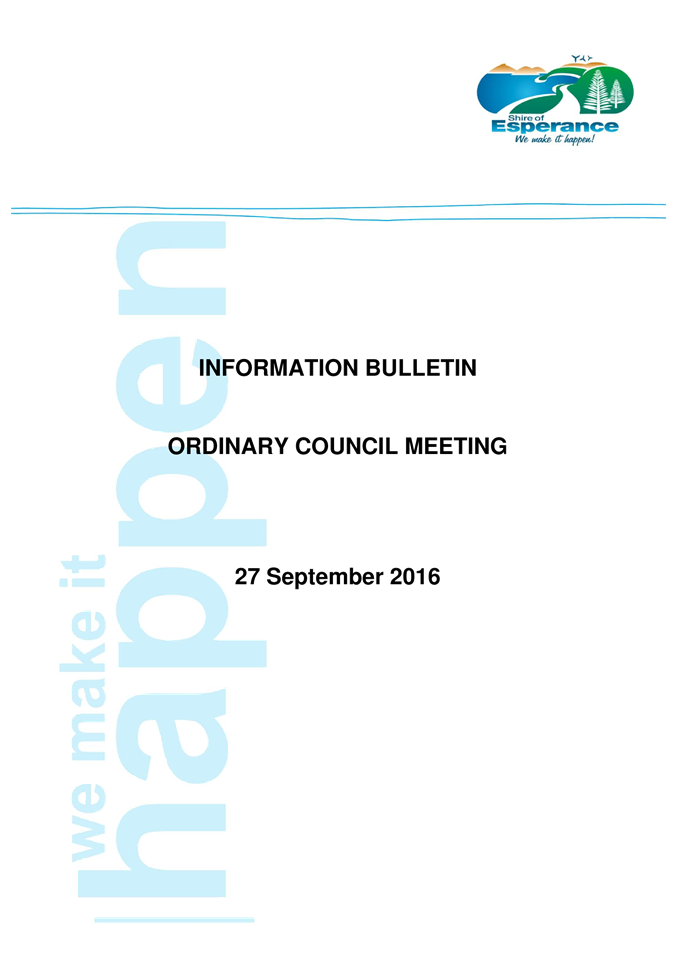 An Ordinary Council meeting of the Shire of Esperance will be held at Council Chambers on 27 September 2016 commencing at 4pm to consider the matters set out in the attached agenda.