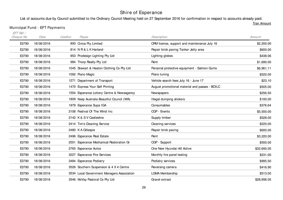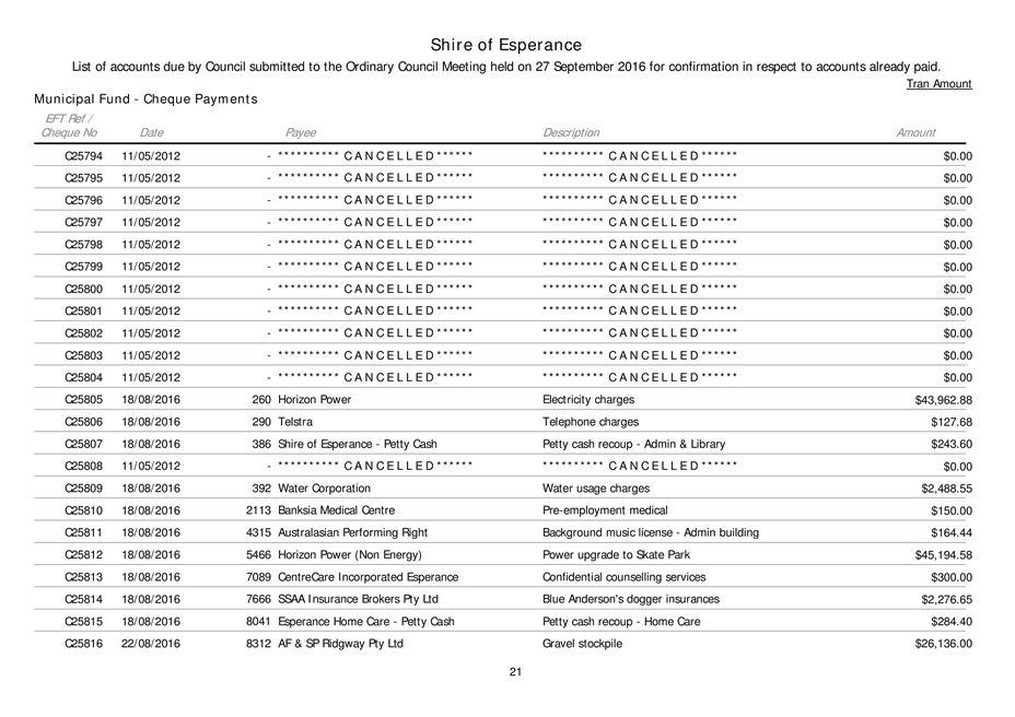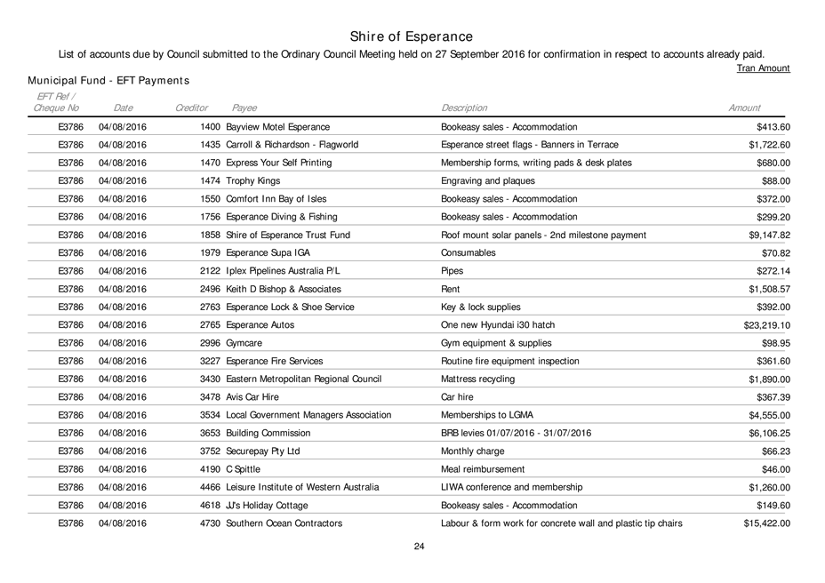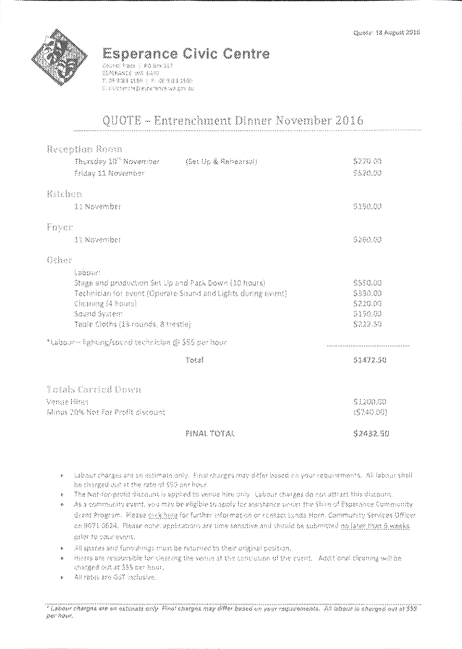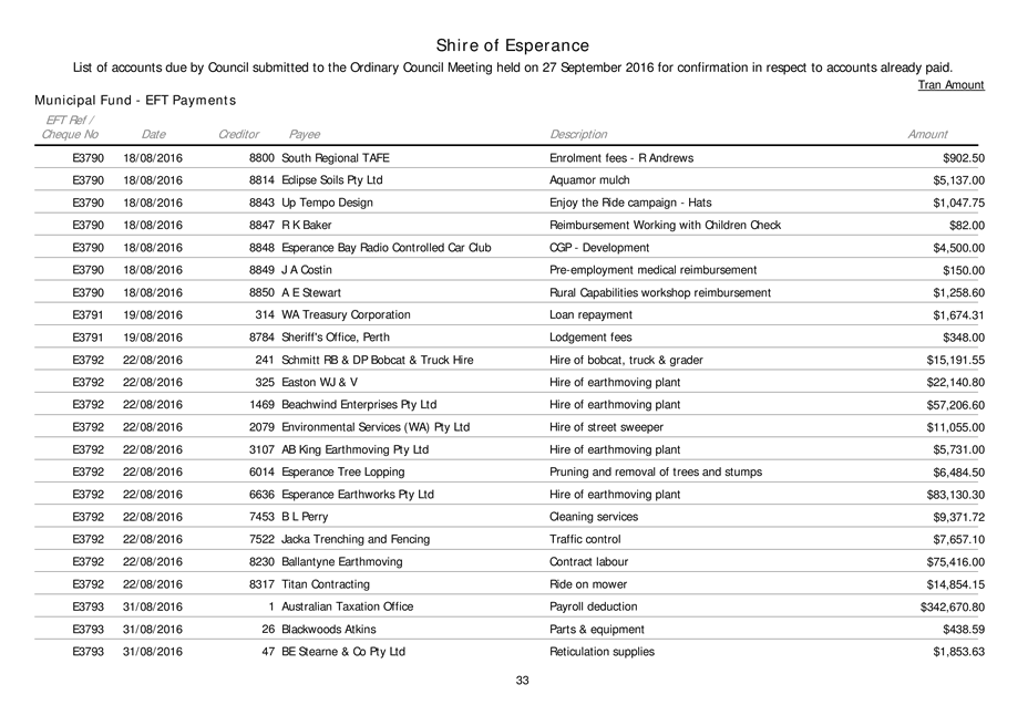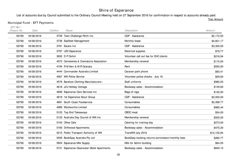 An Ordinary Council meeting of the Shire of Esperance will be held at Council Chambers on 27 September 2016 commencing at 4pm to consider the matters set out in the attached agenda.