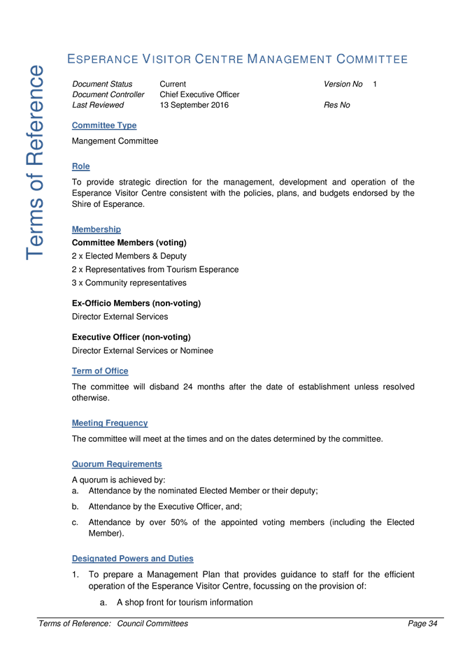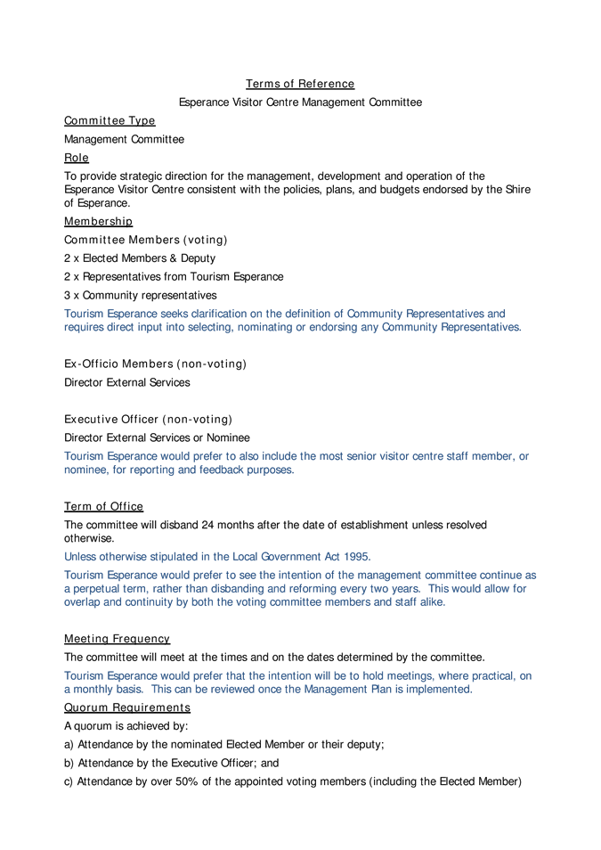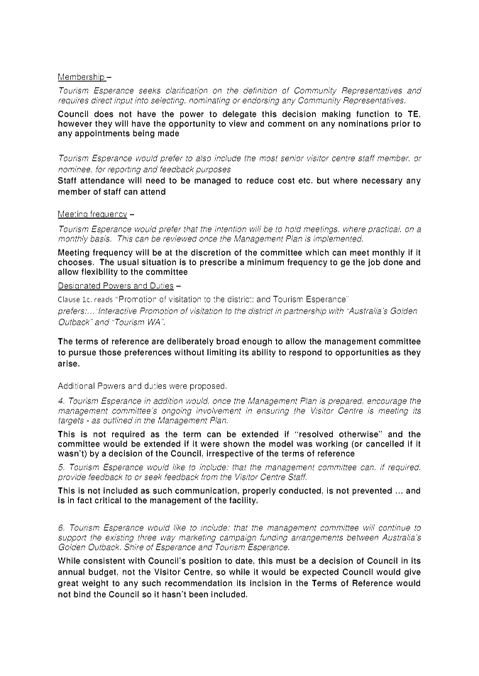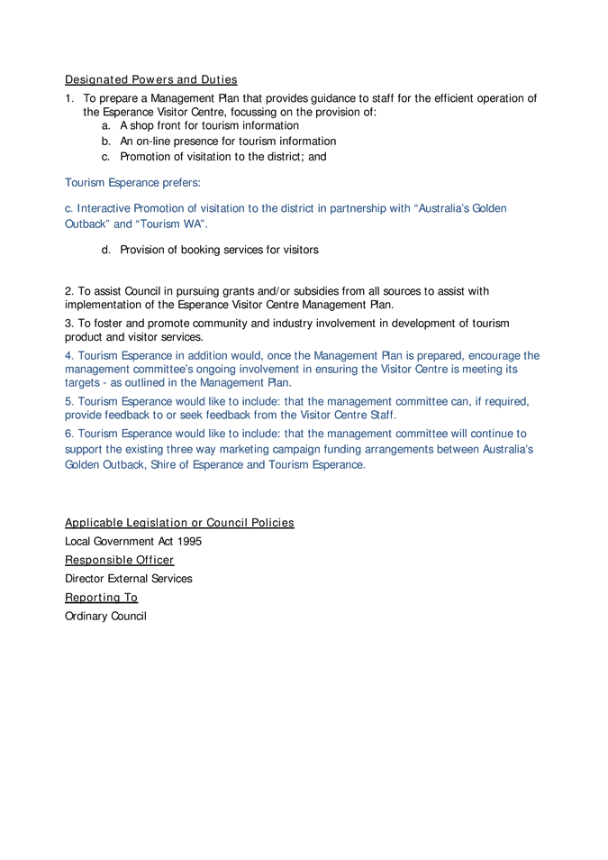 12.1.8 Management Committee - Esperance Visitors Centre