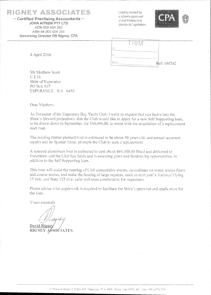 12.3.2 Self Supporting Loan Request - Esperance Bay Yacht Club