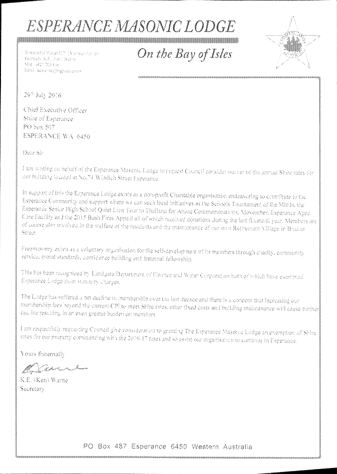 12.3.3 Rate Exemption Application for Esperance Masonic Lodge