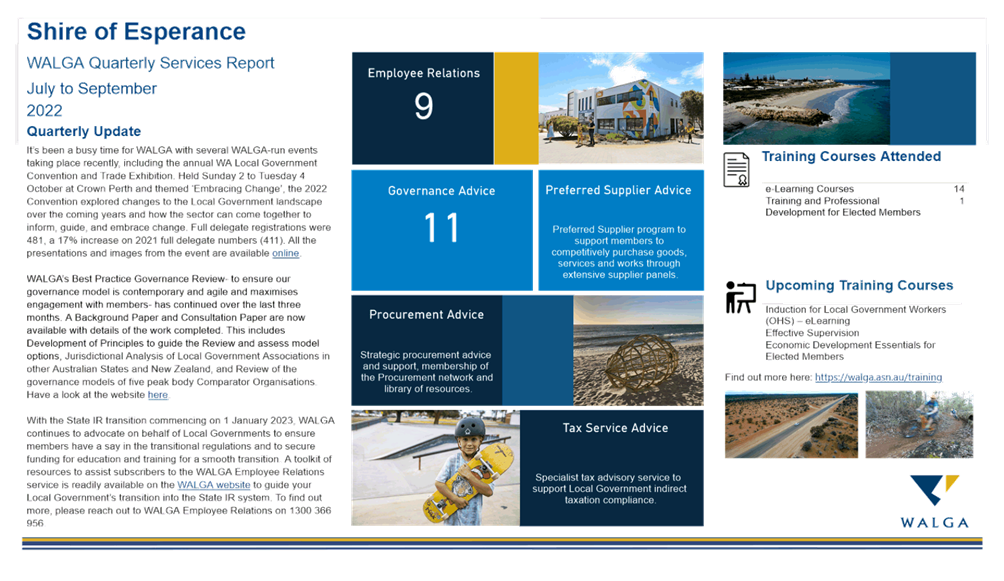 12.4.5 Information Bulletin - November 2022 Moved: Cr Flanagan Seconded: Cr McMullen Council resolutionThat Council accepts: 1. Information Bulletin – November 2022 2. Council Priorities Summary – Corporate Performance – October 2022 3. Delegations Discharge – Corporate Resources 4. Community Grants Program 2022/23 – Small Grants - October 2022 5. WALGA Quarterly Report 6. Letter – Hon John Carey MLA