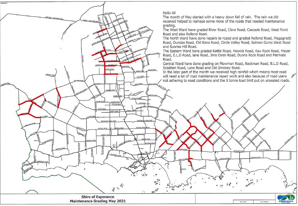 Mr Walker responded that the Shire has issued permits for oversize farm machinery to use this section of road between farming properties, given the safety of slow moving oversize loads and distance they would have to travel via the South Coast Hwy and Newdegate-Ravensthorpe road.